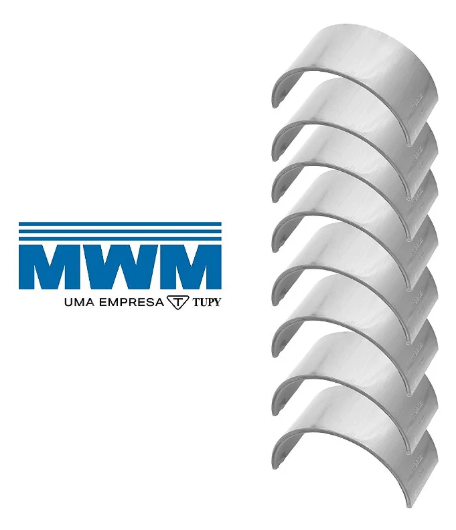 Material: liga para bronzina (geralmente cobre/bronze + metal de suporte), desenhada para suportar atrito entre biela e virabrequim.